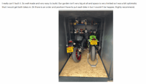The certifications back this up: Loss Prevention Certification Board Level 1, UK Locksmiths approved, Police Secured by Design, and Bennetts Insurance approval – many insurers will actually reduce your premiums if your bike’s stored in one.